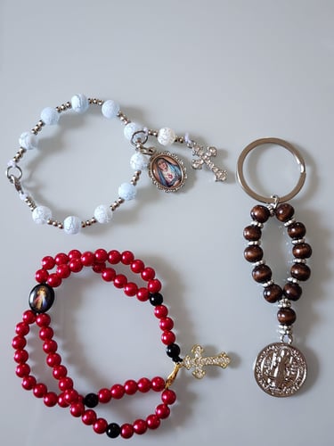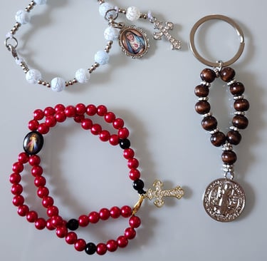 Terços feitos à mão, cada um com sua história de fé e cuidado.